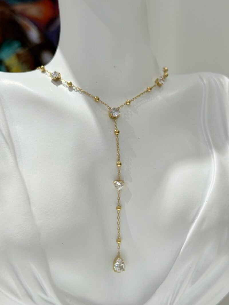 Ένα αιθέριο κόσμημα που προσθέτει μια δόση πολυτέλειας σε κάθε σας εμφάνιση. Αυτό το κολιέ σε σχήμα “Y” συνδυάζει την κλασική αλυσίδα με μπίλιες (beaded chain) και εντυπωσιακά ζιργκόν, δημιουργώντας μια αίσθηση ροής και λάμψης.