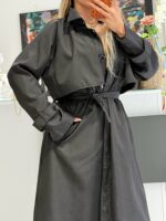 • Λεπτομέρειες: Είναι εξοπλισμένη με ζώνη στη μέση από το ίδιο ύφασμα, η οποία σφίγγει για να αναδείξει τη σιλουέτα, και διακριτικά κουμπιά σε όλο το μήκος της.