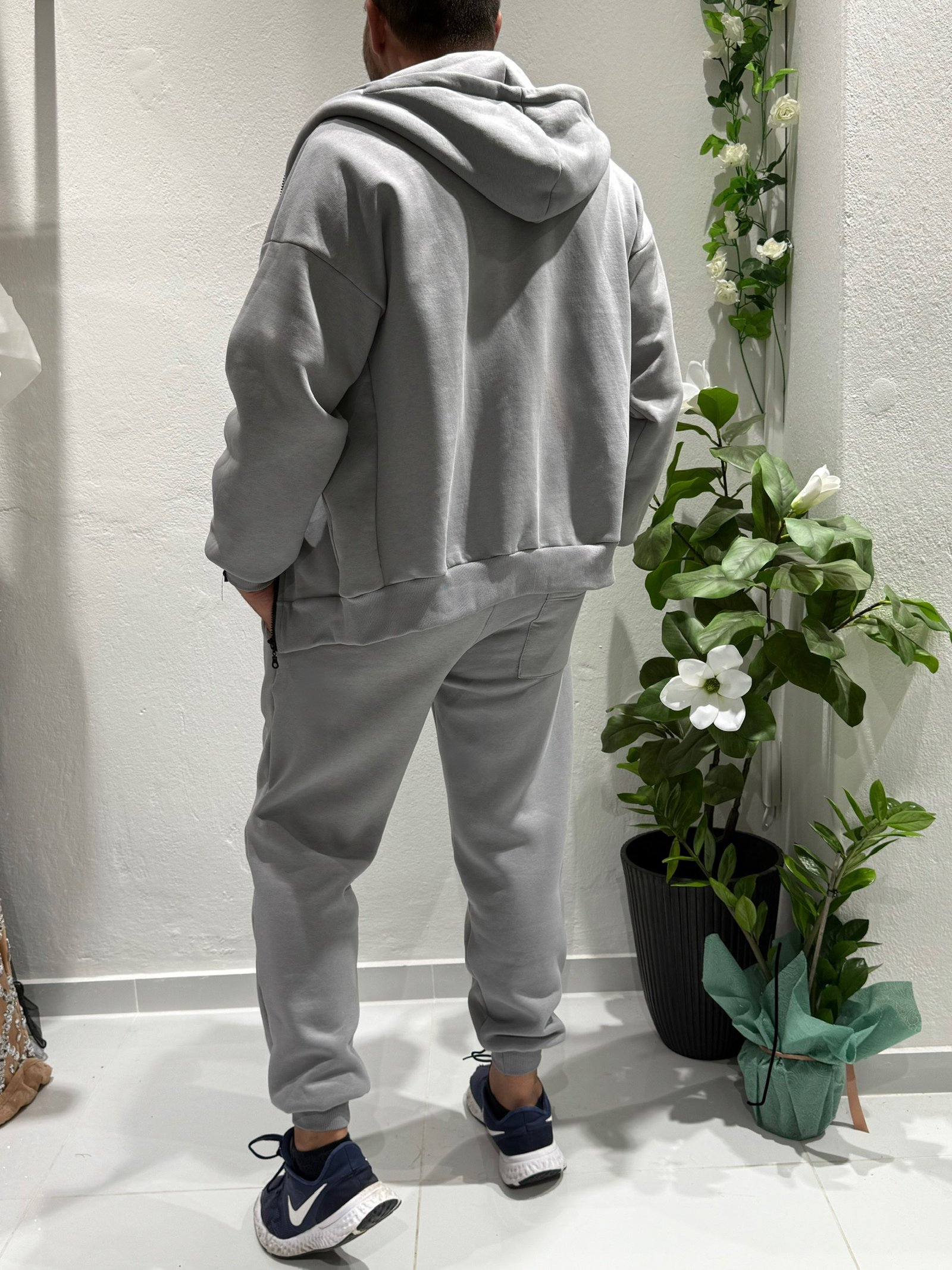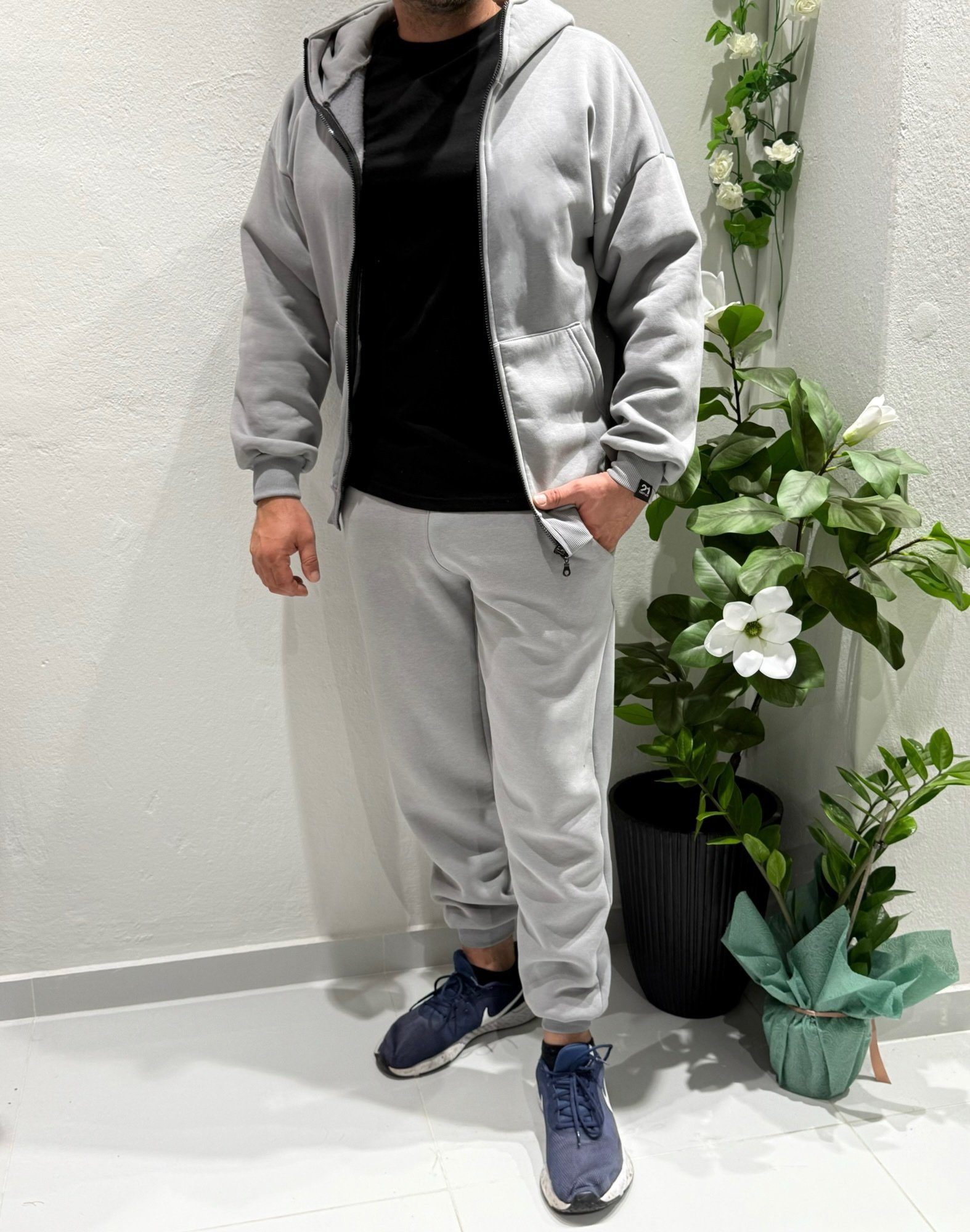Σετ φόρμας με ζακέτα-κουκούλα και παντελόνι με λάστιχο. Minimal design με urban χαρακτήρα, ιδανικό για άνεση και στυλ όλη μέρα. Διαθέσιμο σε γκρι και μαύρο