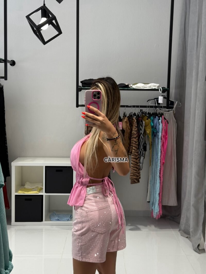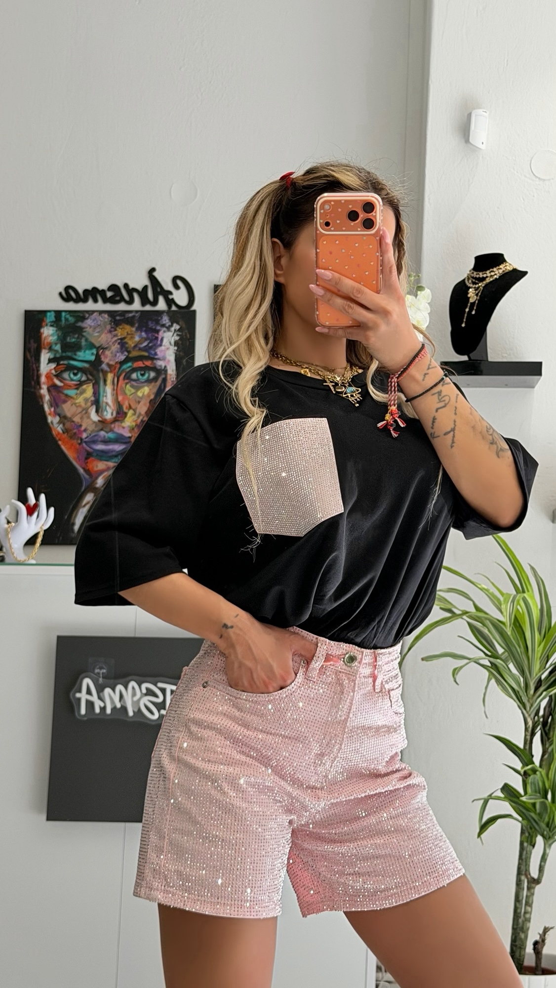 Μην αφήνεις κανένα φως να πάει χαμένο. Το Brilléa είναι το απόλυτο σορτς-δήλωση, καλυμμένο εξολοκλήρου με στρας μπροστά και πίσω, που αιχμαλωτίζουν το βλέμμα με κάθε σου κίνηση.