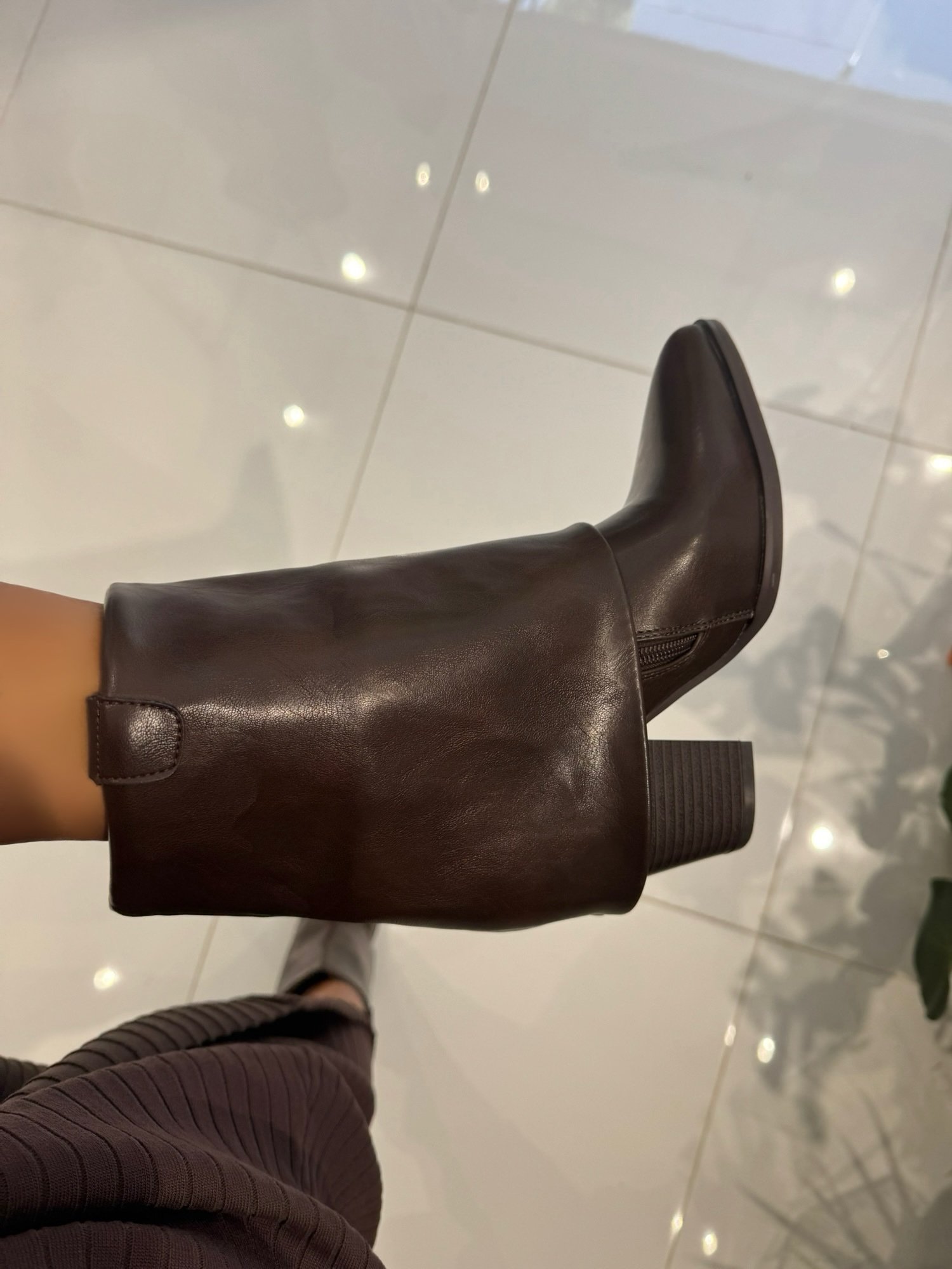 Το Broncera είναι το καφέ καουμπόικο μποτάκι που μεταμορφώνεται σε μπότα, φτιαγμένο από premium δερματίνη με λείο φινίρισμα. Η αναδιπλούμενη γάμπα του σου δίνει τη δυνατότητα να το φορέσεις κοντό, αποκαλύπτοντας το τακούνι για πιο casual western διάθεση, ή να το ανεβάσεις για ψηλή μπότα look. Ένα κομμάτι ευέλικτο και ανθεκτικό, που συνδυάζει τη ζεστασιά της γης με την άνεση της καθημερινής πόλης.