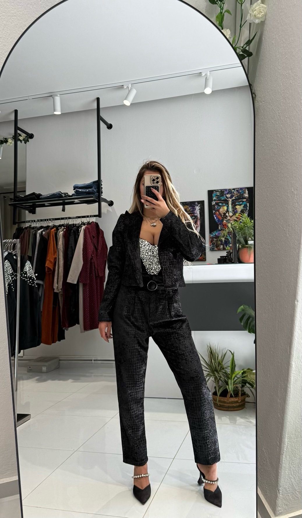 Σετ τύπου croco που απογειώνει την αυτοπεποίθηση με τη μοναδική του υφή και τη διαχρονική του γραμμή. Ιδανικό για γυναίκες που αγαπούν τη λεπτομέρεια και ξέρουν να ξεχωρίζουν χωρίς υπερβολές.