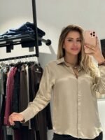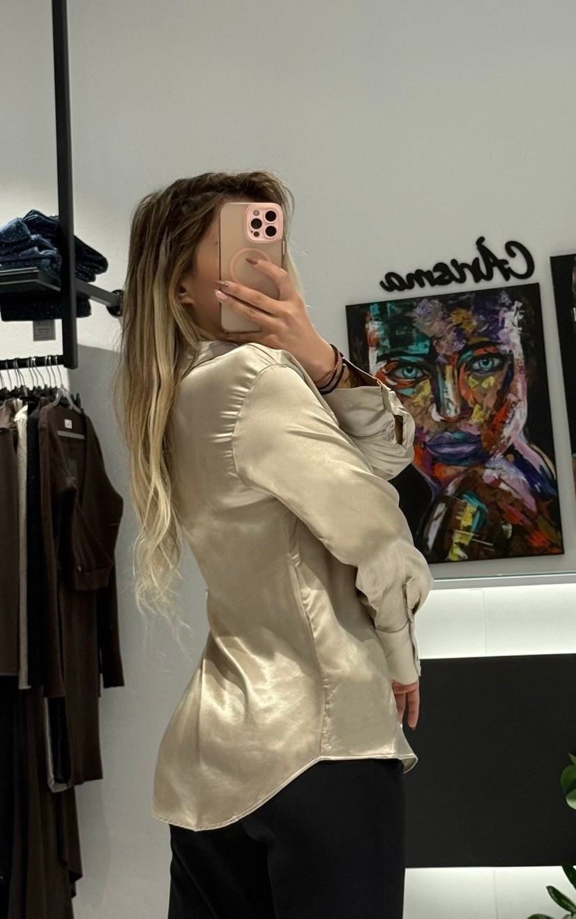 Το πουκάμισο Celeste αποτελεί την επιτομή της σύγχρονης κομψότητας. Κατασκευασμένο από πλούσιο σατέν, προσφέρει μια μοναδική, ρευστή υφή και μια διακριτική, εκλεπτυσμένη λάμψη που φωτίζει το πρόσωπο. Η κλασική του γραμμή με τον αιχμηρό γιακά και τις καθαρές μανσέτες το καθιστά ευέλικτο: φορέστε το από το πρωί στο γραφείο μέχρι τις βραδινές σας εξόδους.