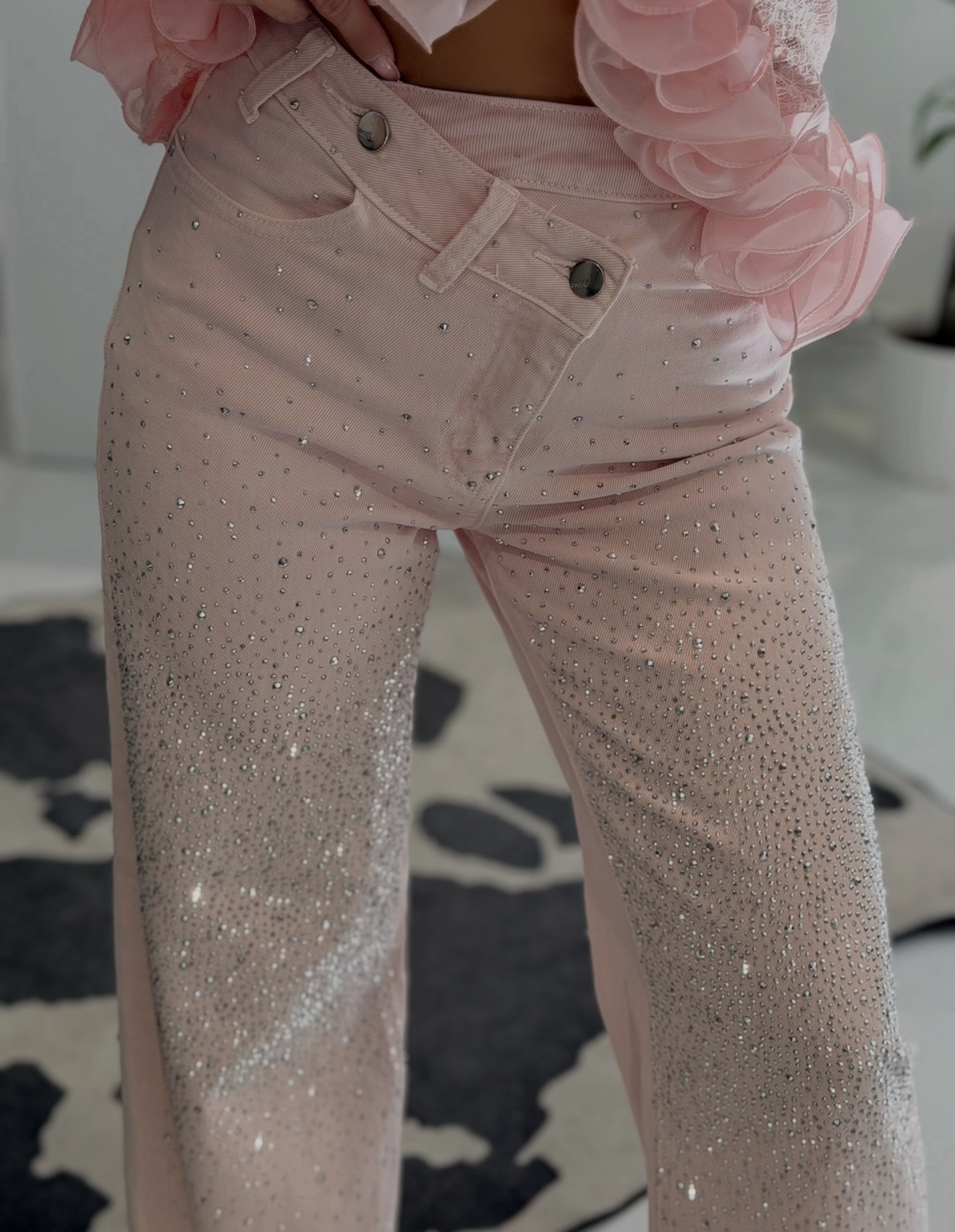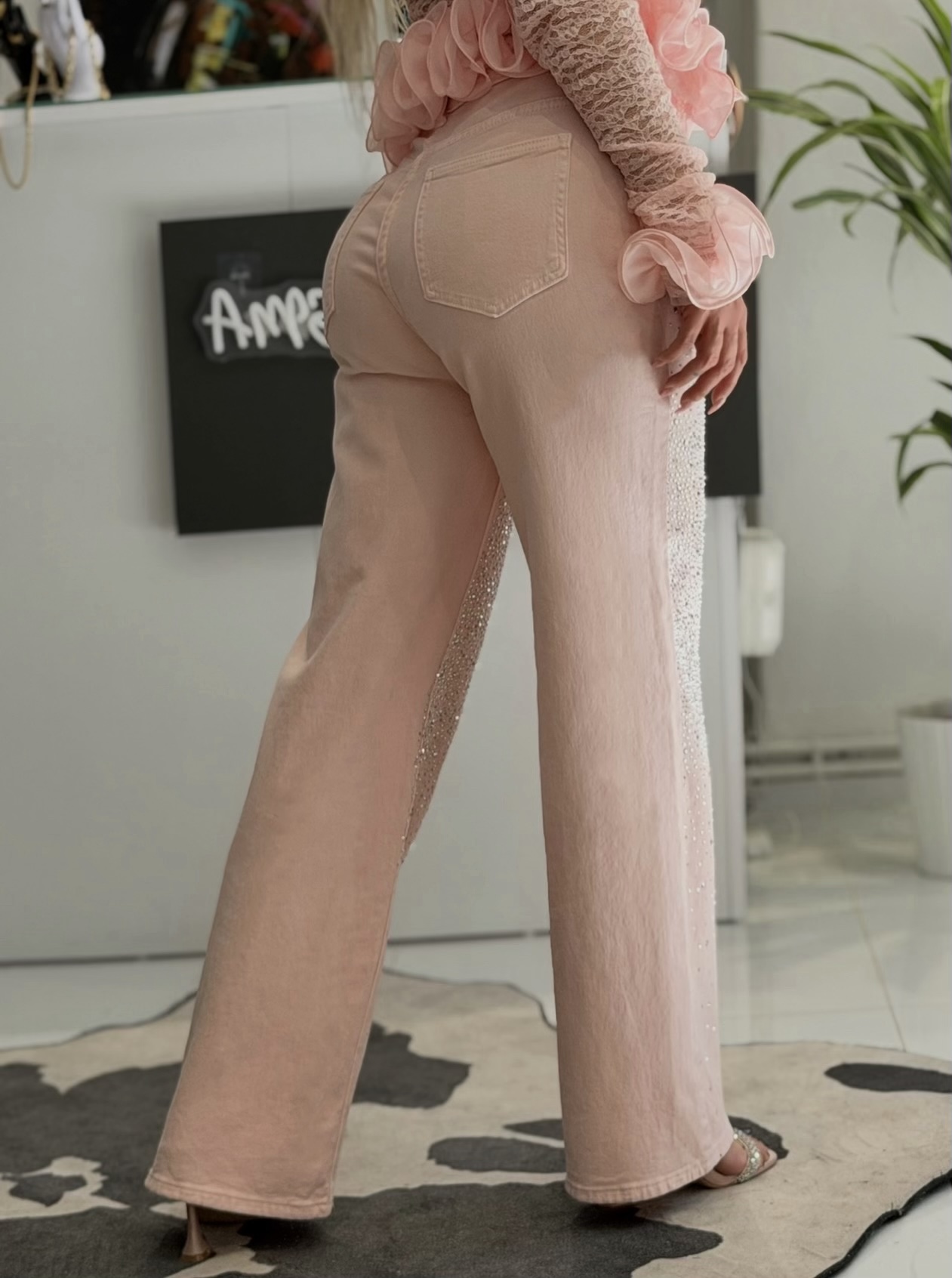 • Λεπτομέρειες: Πεντάτσεπο σχέδιο, λειτουργικές πίσω τσέπες, στρας υψηλής αντοχής.
