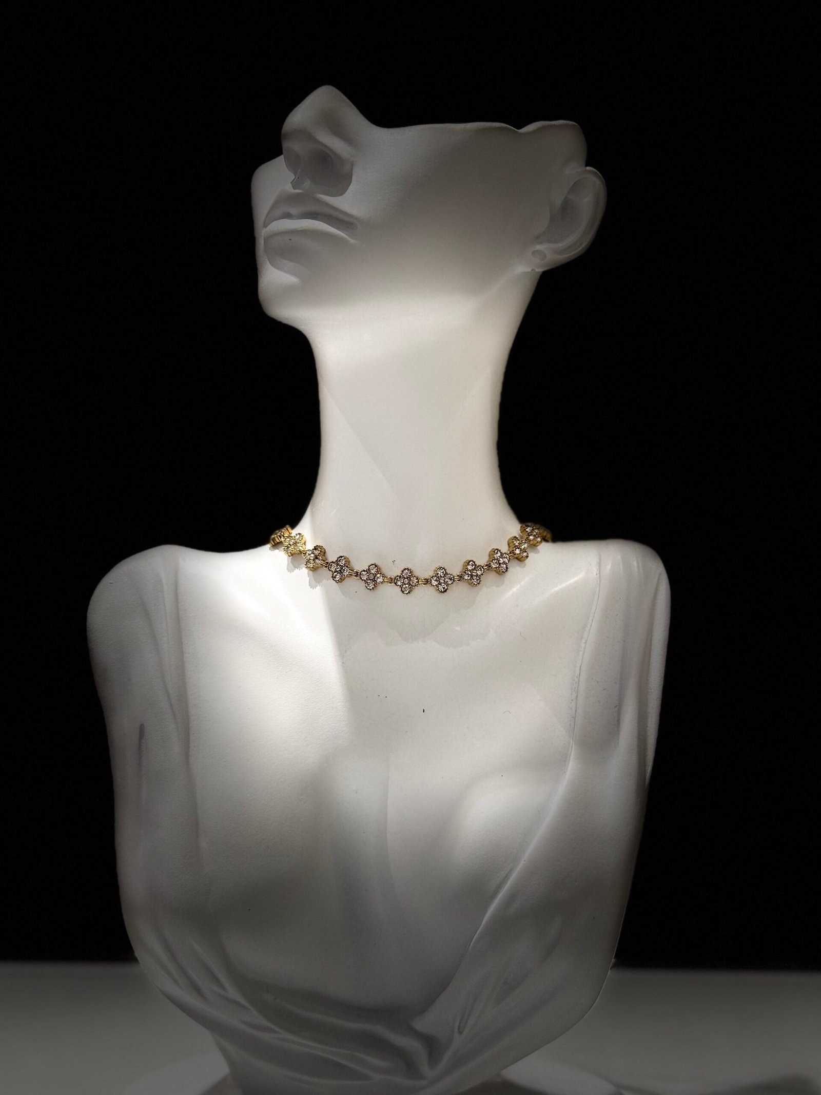 Ένα ιδιαίτερο κολιέ από ανοξείδωτο ατσάλι, που αποτελείται από μια συνεχή σειρά μικρών, λαμπερών σταυρών. Κάθε σταυρουδάκι είναι επενδυμένο με λευκά ζιργκόν, δημιουργώντας ένα κόσμημα που ισορροπεί ανάμεσα στο κλασικό σύμβολο και τη σύγχρονη glam αισθητική.