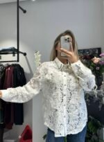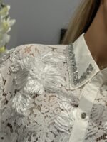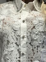 Το πουκάμισο Eliza είναι η απόλυτη δήλωση κομψότητας και πολυτέλειας. Κατασκευασμένο από εξαιρετικής ποιότητας λευκή δαντέλα με πλούσια, ανάγλυφα floral μοτίβα που προσδίδουν τρισδιάστατη υφή και ρομαντική διάθεση.
