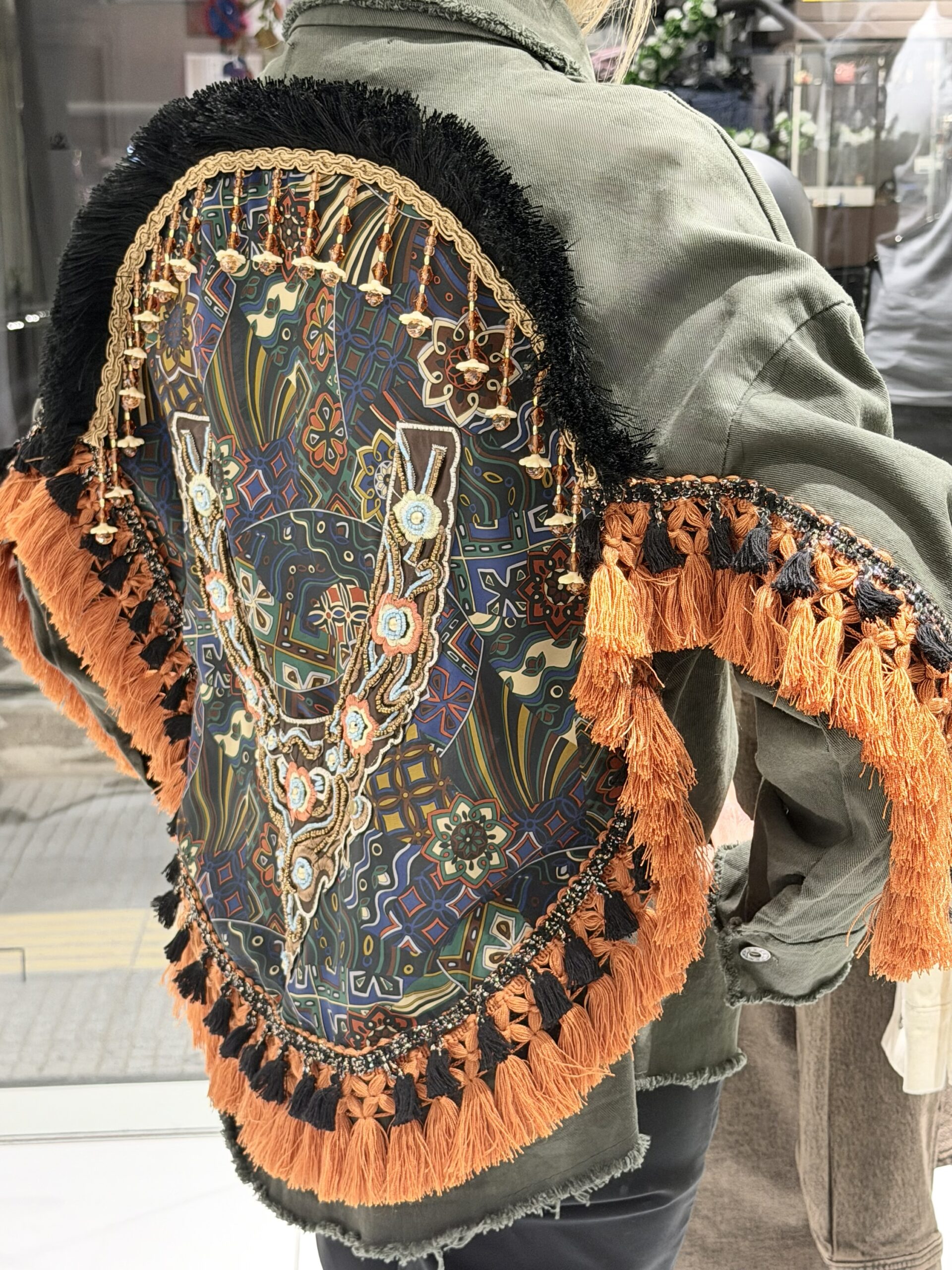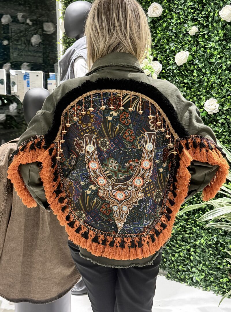 • Artisanal Tassels & Trims: Χειροποίητα ασπρόμαυρα tassels προσθέτουν μια ethnic-chic πινελιά, υπογραμμίζοντας τον μοναδικό χαρακτήρα του jacket.