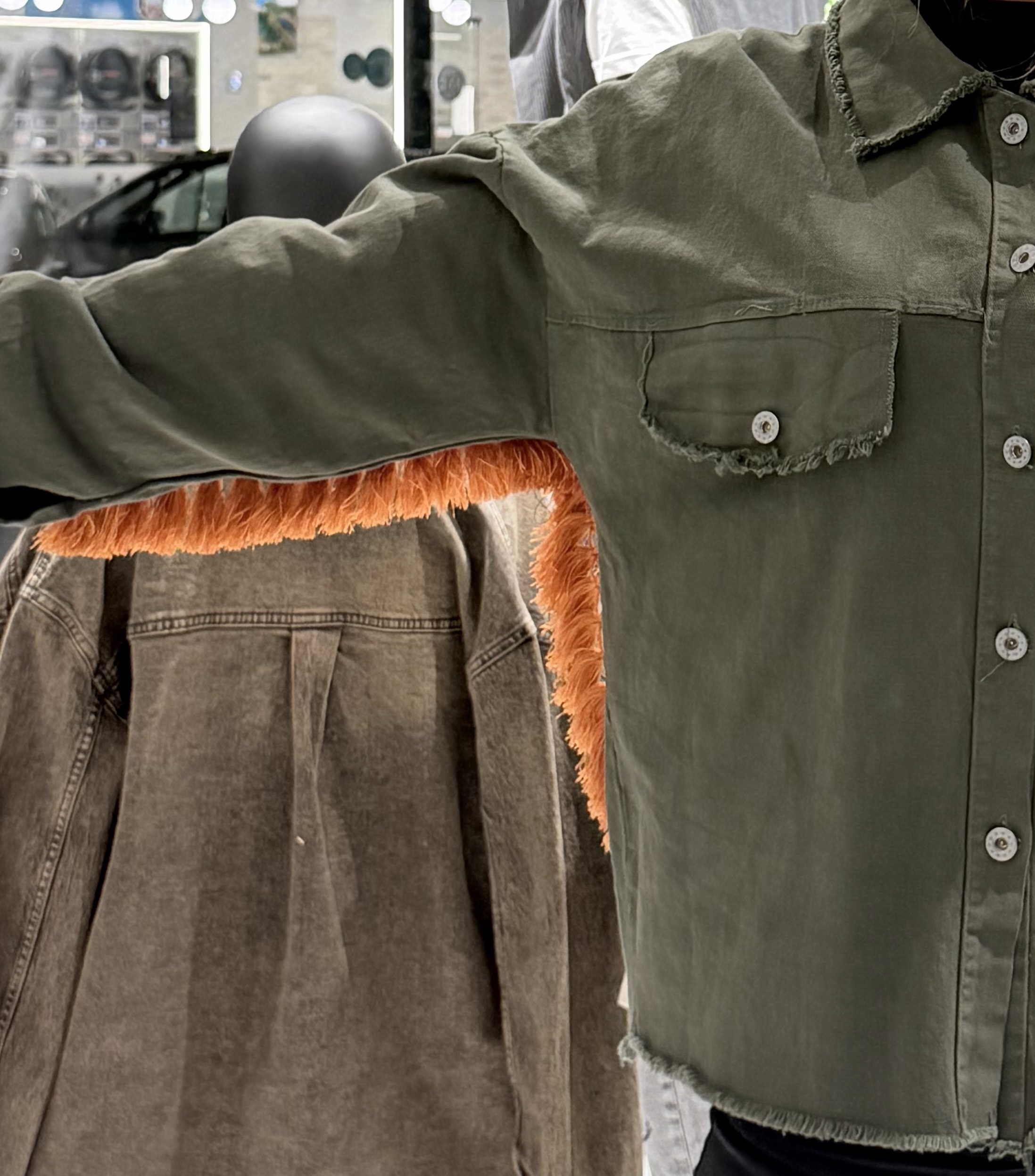 • Raw-Cut Contemporary Finish: Ο ακατέργαστος γιακάς και τα distressed τελειώματα δίνουν μια σύγχρονη, edgy αίσθηση στην κλασική πολυτέλεια.