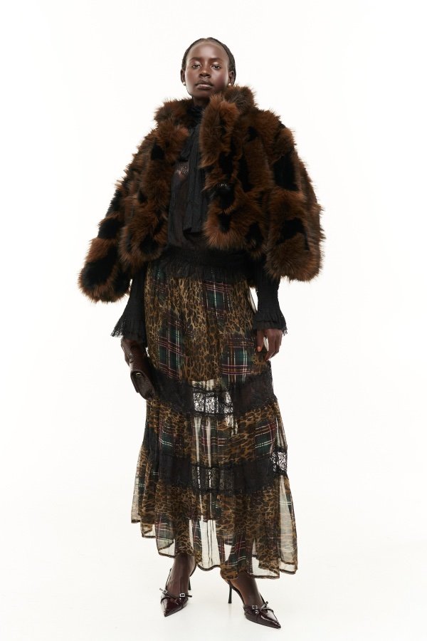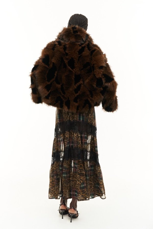 Συνθετική γούνα. Διαθέτει γιακά με πέτο. Animal print σχέδιο. Κλείσιμο μπροστά με κουμπί-κλιπ. Μπροστινές τσέπες. Κανονική γραμμή, διαθέσιμο σε ONE size.