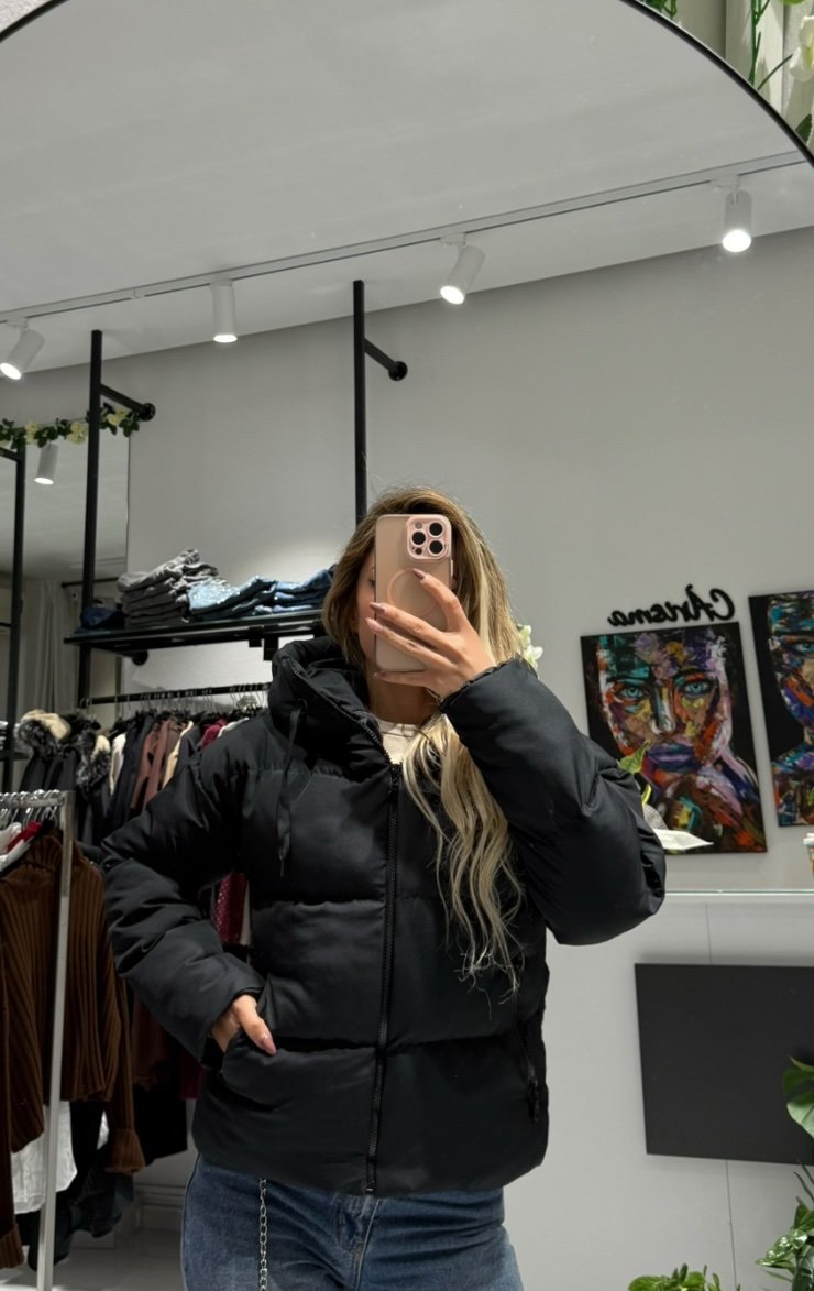 Κοντό, φουσκωτό μπουφάν που θα γίνει ο καλύτερος φίλος σας τον χειμώνα. Συνδυάζοντας την απόλυτη ζεστασιά με μια μοντέρνα, κομψή γραμμή, αγκαλιάζει τη σιλουέτα χωρίς να προσθέτει περιττό όγκο.