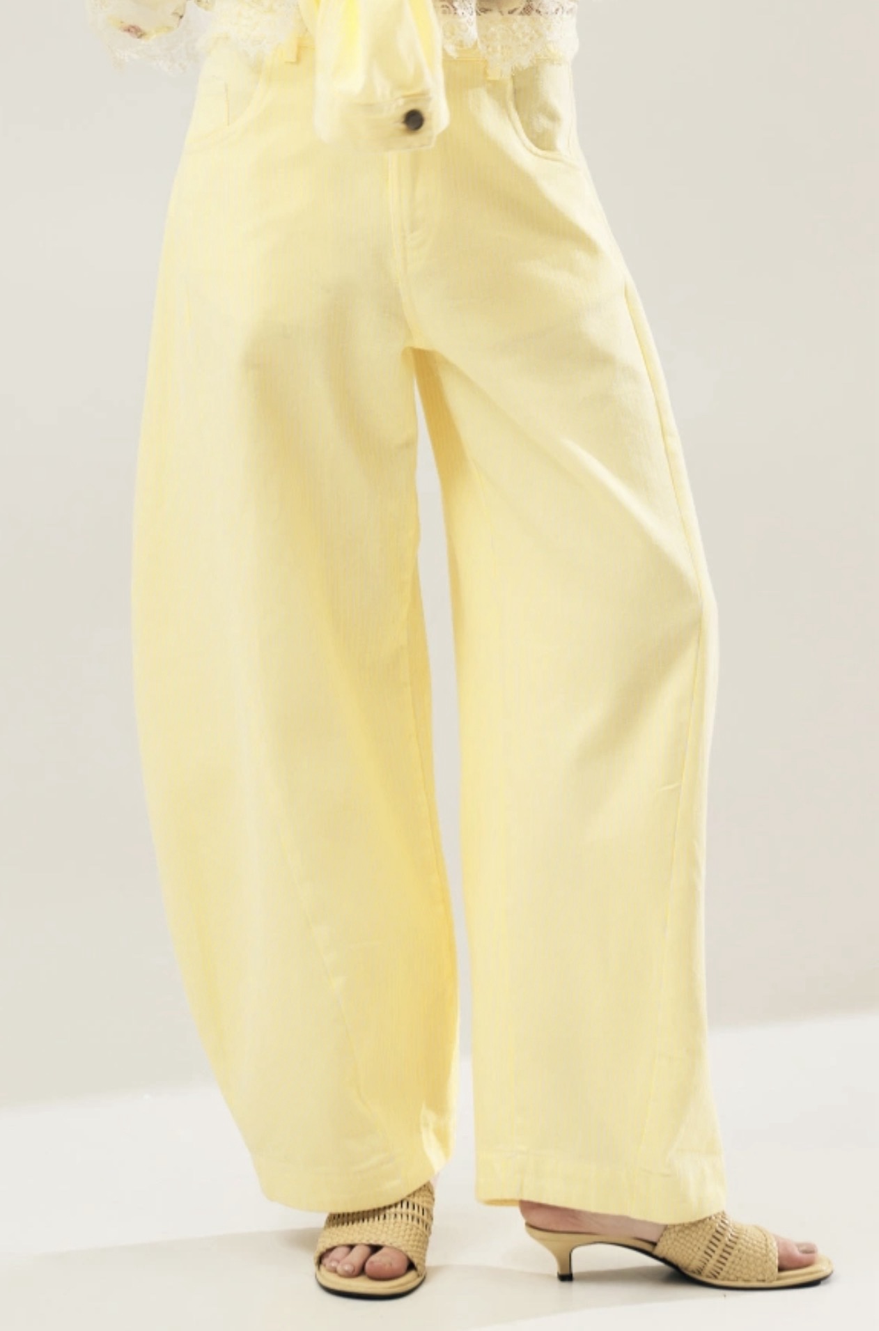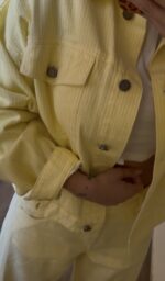 Το νέο Lumina Striped Denim Set σε παστέλ κίτρινο είναι η απόλυτη δήλωση μόδας για αυτή τη σεζόν. Άνετο, στυλάτο και έτοιμο να κλέψει τις εντυπώσεις.
