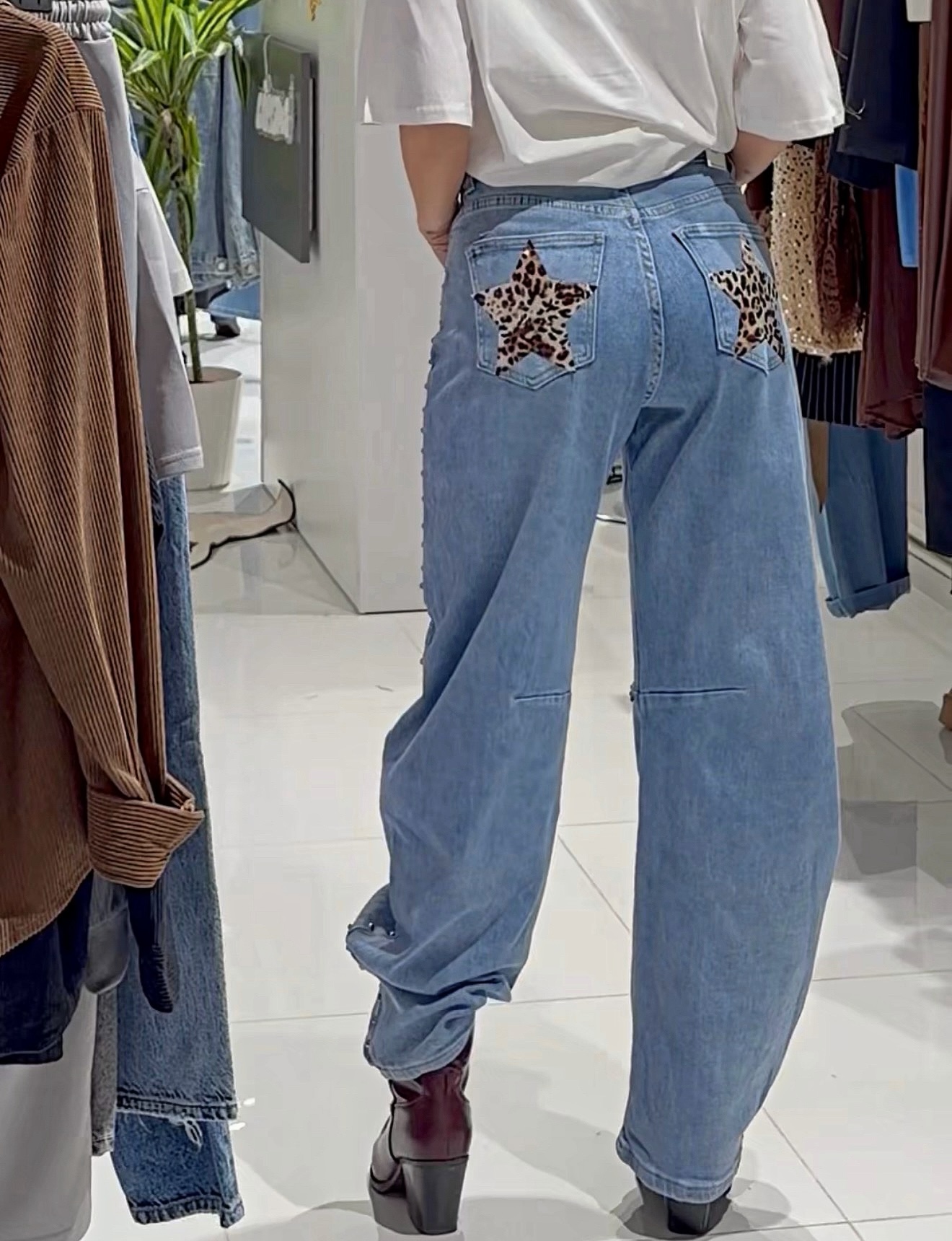 • Leopard Stars: Υφασμάτινα αστέρια σε leopard print στις πίσω τσέπες.