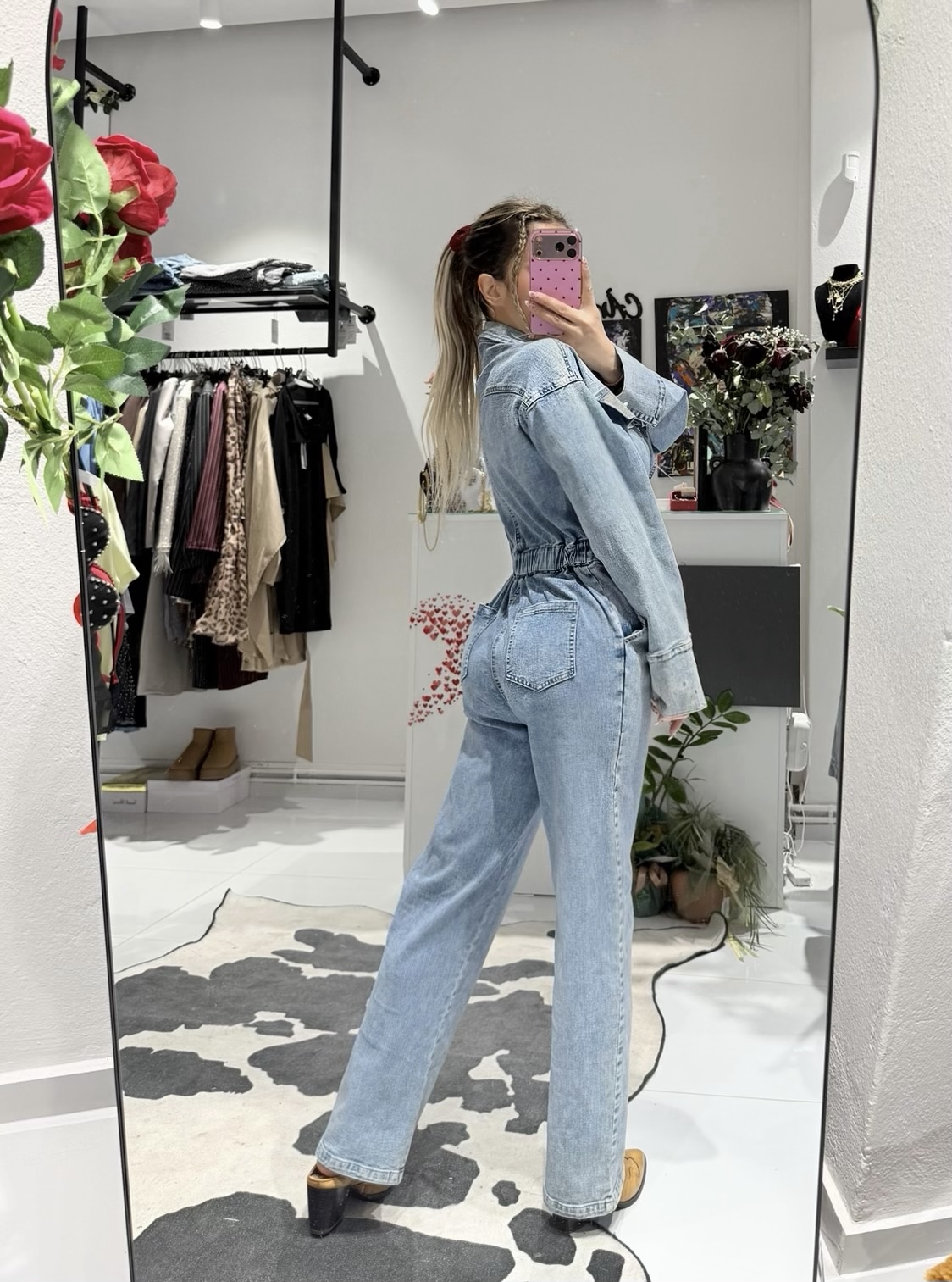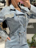 Η ολόσωμη φόρμα “Lucy” Strass Denim Jumpsuit είναι η ιδανική επιλογή για μια εμφάνιση που συνδυάζει το street style με glam λεπτομέρειες. Πρόκειται για ένα κομμάτι που αποπνέει αυτοπεποίθηση και στυλ, ιδανικό για τις βραδινές σου εξόδους ή για μια αναβαθμισμένη καθημερινή εμφάνιση.