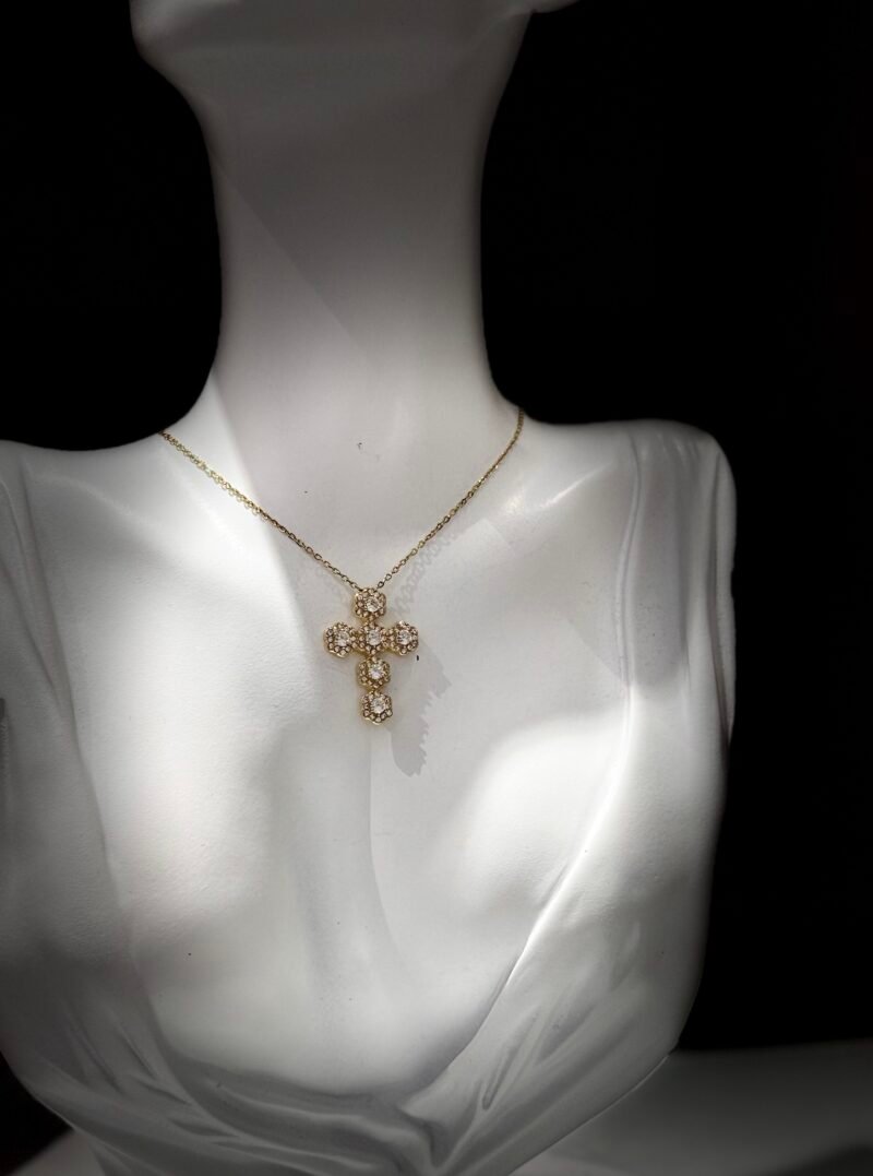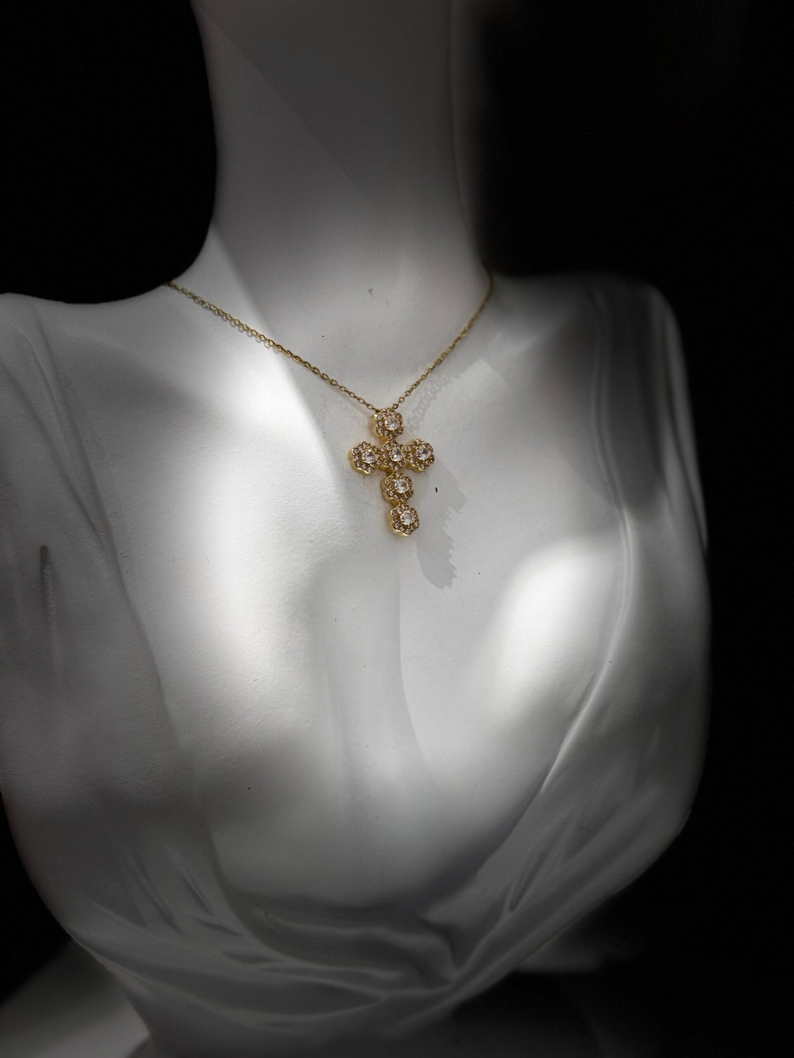 Ένα κόσμημα που αποπνέει φινέτσα και πνευματικότητα. Αυτός ο σταυρός δεν είναι ένα απλό θρησκευτικό σύμβολο, αλλά ένα statement κομμάτι διακοσμημένο με περίτεχνες λεπτομέρειες που μαγνητίζουν το φως.