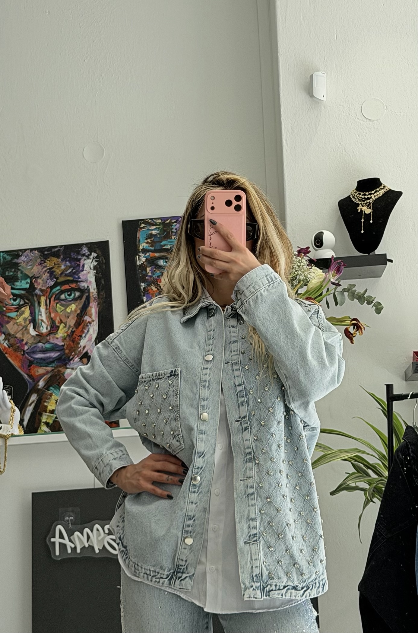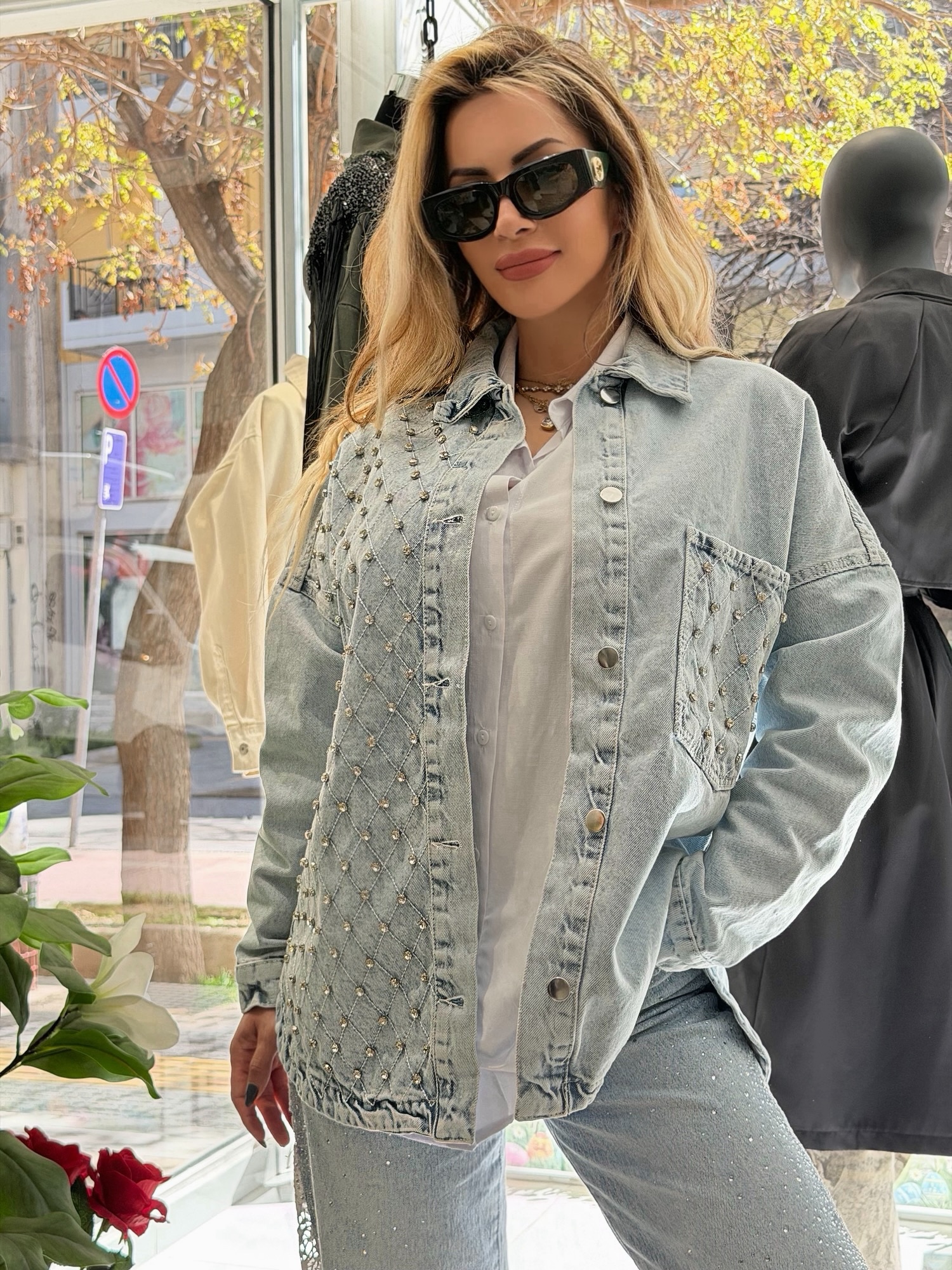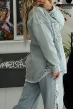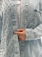 Απογειώστε το καθημερινό σας look με το Marveille Sparkle Denim Jacket, ένα κομμάτι που συνδυάζει την casual αισθητική του τζιν με την πολυτέλεια της λάμψης.