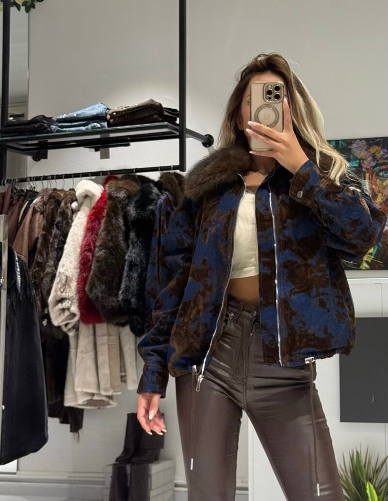 Το μπουφάν Mira συνδυάζει cozy αίσθηση και στιλ. Η ζεστή γούνα στο εσωτερικό χαρίζει άνεση, ενώ το ιδιαίτερο εξωτερικό σχέδιο σε μπλε-καφέ τόνους το κάνει ξεχωριστό. Ένα κομμάτι που δίνει χαρακτήρα σε κάθε χειμερινή εμφάνιση.