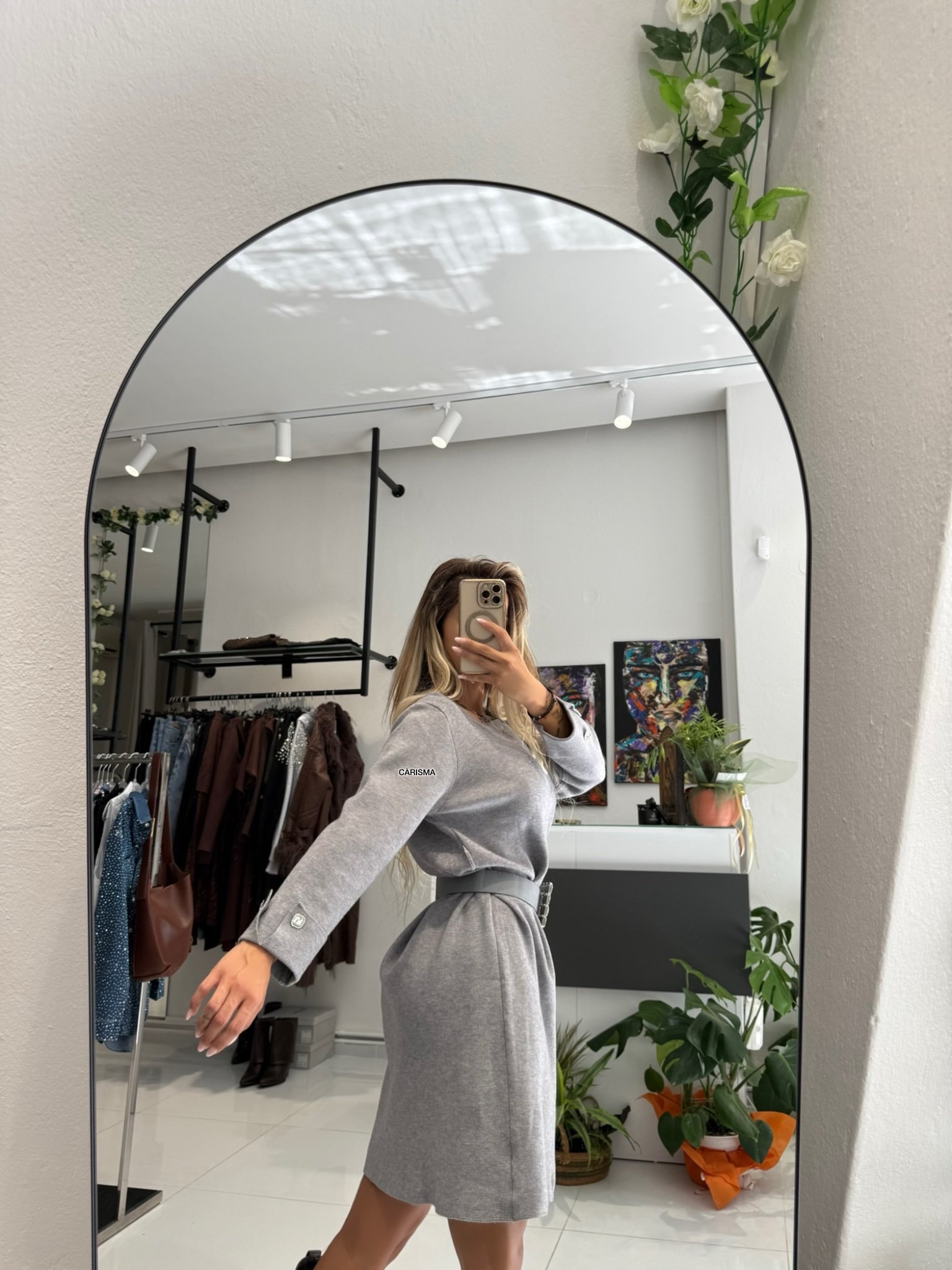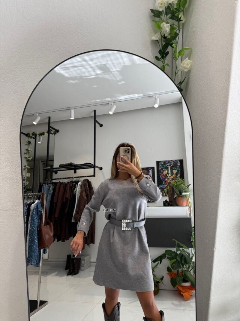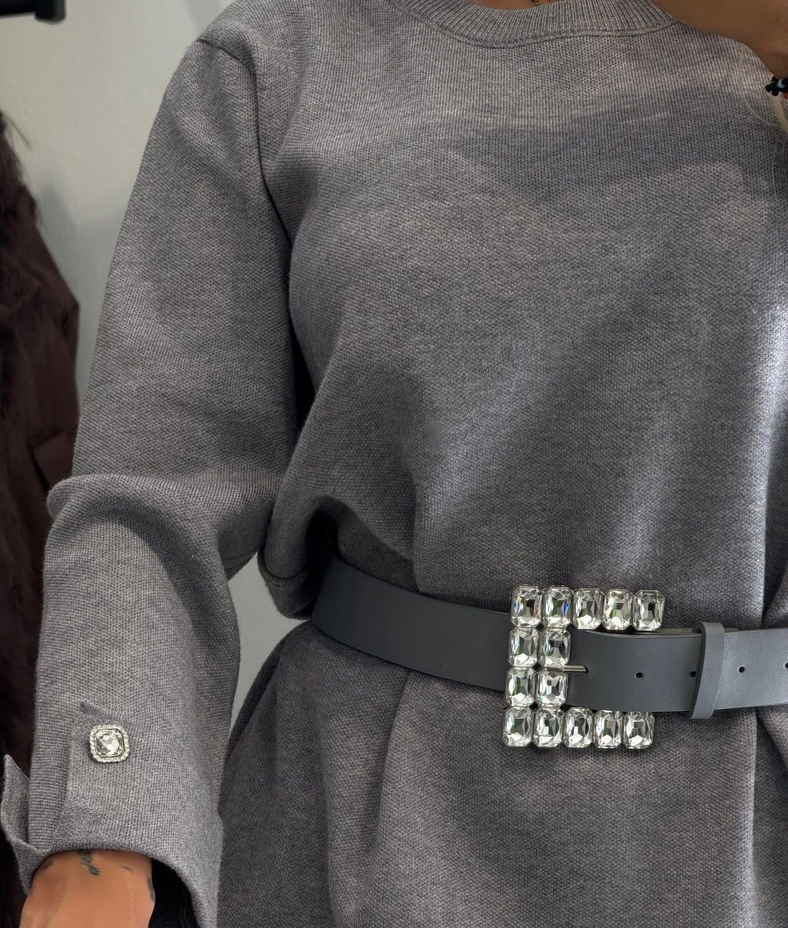 Φόρεμα με μακρύ μανίκι, αστραφτερές λεπτομέρειες και ζώνη με πέτρες.