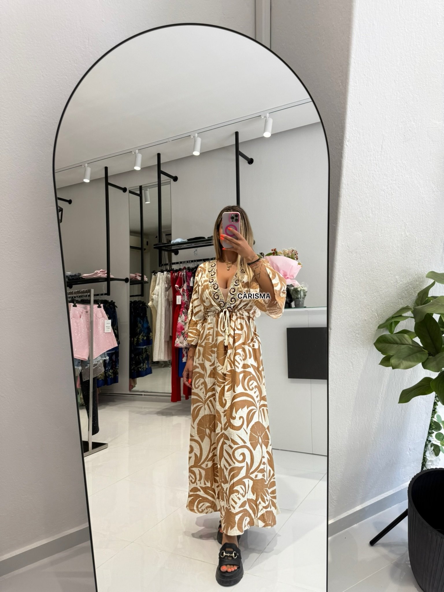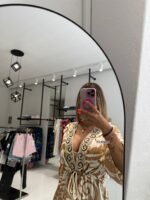 Το Nomía είναι το απόλυτο καλοκαιρινό φόρεμα που ενώνει τη φύση με τη θηλυκότητα. Αέρινο, με ζεστά γήινα patterns που θυμίζουν ηλιοκαμένες επιφάνειες και χρυσαφένια στάχυα. Η χαλαρή γραμμή του σε συνδυασμό με τη ρυθμιζόμενη μέση αγκαλιάζει το σώμα χωρίς να το περιορίζει.