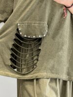 • Cut-out Slash Details: Το χαρακτηριστικό άνοιγμα με λωρίδες στο πλάι της μπλούζας προσδίδει έναν “rebel” χαρακτήρα και αίσθηση αποδόμησης.