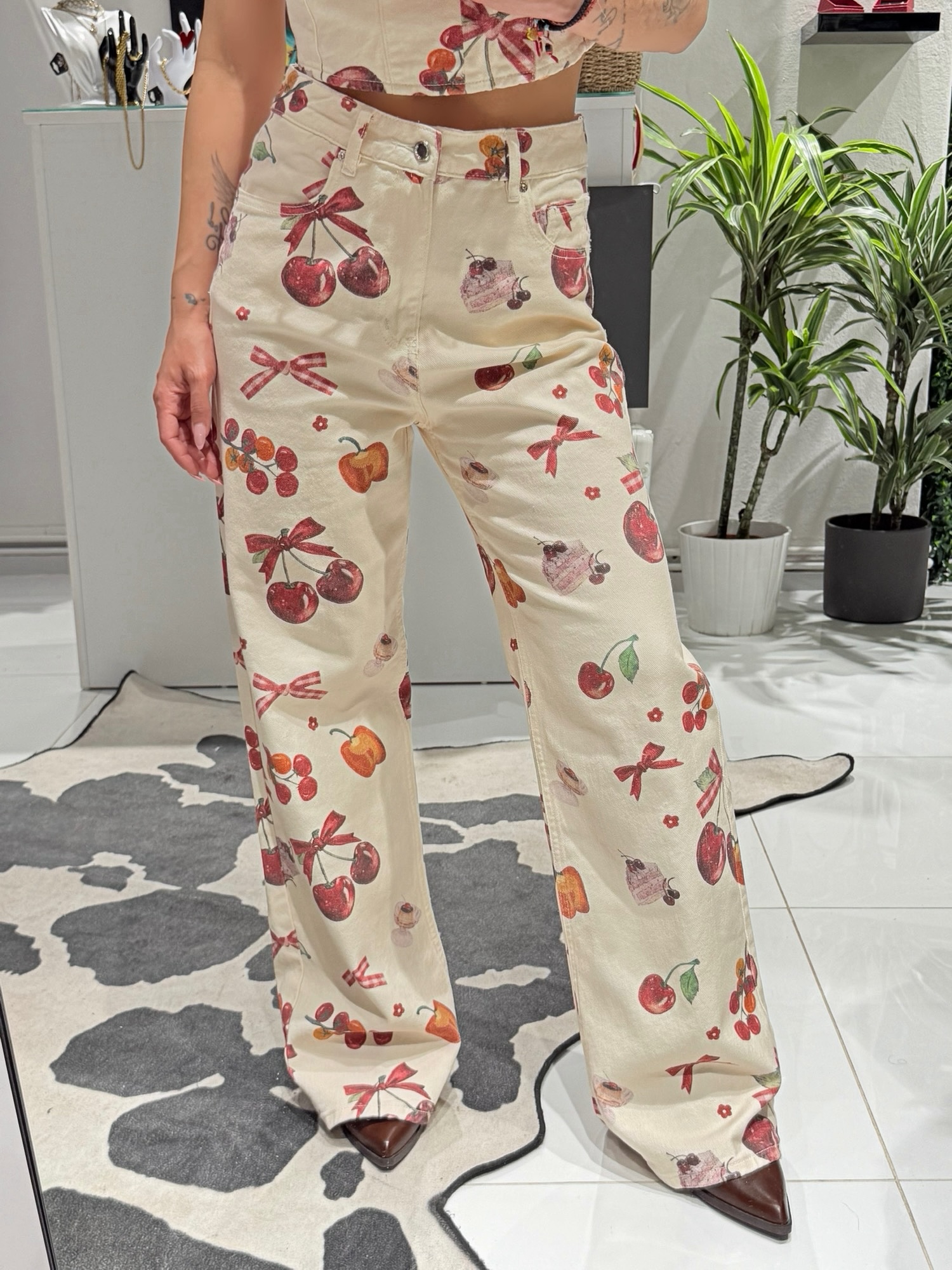 Το απόλυτο Coquette-Style σύνολο της σεζόν είναι εδώ! Το Sweet Cherry Denim Set συνδυάζει την αθωότητα του vintage print με τη δυναμική γραμμή του denim, δημιουργώντας ένα look που μαγνητίζει τα βλέμματα.