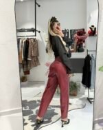 Δερματίνη σε balloon γραμμή που στενεύει κομψά στον αστράγαλο.Με φερμουάρ στη μέση και τέλεια εφαρμογή, το Tina είναι το απόλυτο statement παντελόνι της σεζόν.