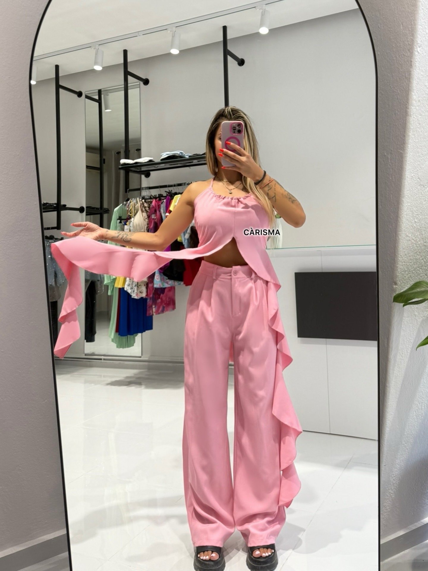 -17%Το Valentina είναι το απόλυτο fashion statement. Ένα ροζ σετ με φαρδύ παντελόνι και ασύμμετρο τοπ με αέρινα βολάν, που δένει στην πλάτη και αναδεικνύει τη θηλυκότητα με παιχνιδιάρικο αλλά κομψό τρόπο. Εξώπλατο και εντυπωσιακό από κάθε γωνία — για γυναίκες που θέλουν να ξεχωρίζουν χωρίς να το προσπαθούν. ✨