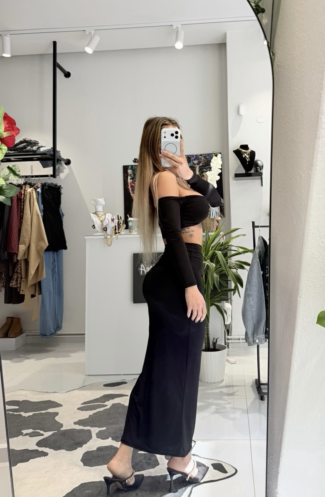 • Skirt: Ψηλόμεση maxi φούστα σε minimal, στενή γραμμή που χαρίζει ύψος και κομψότητα σε κάθε κίνηση.