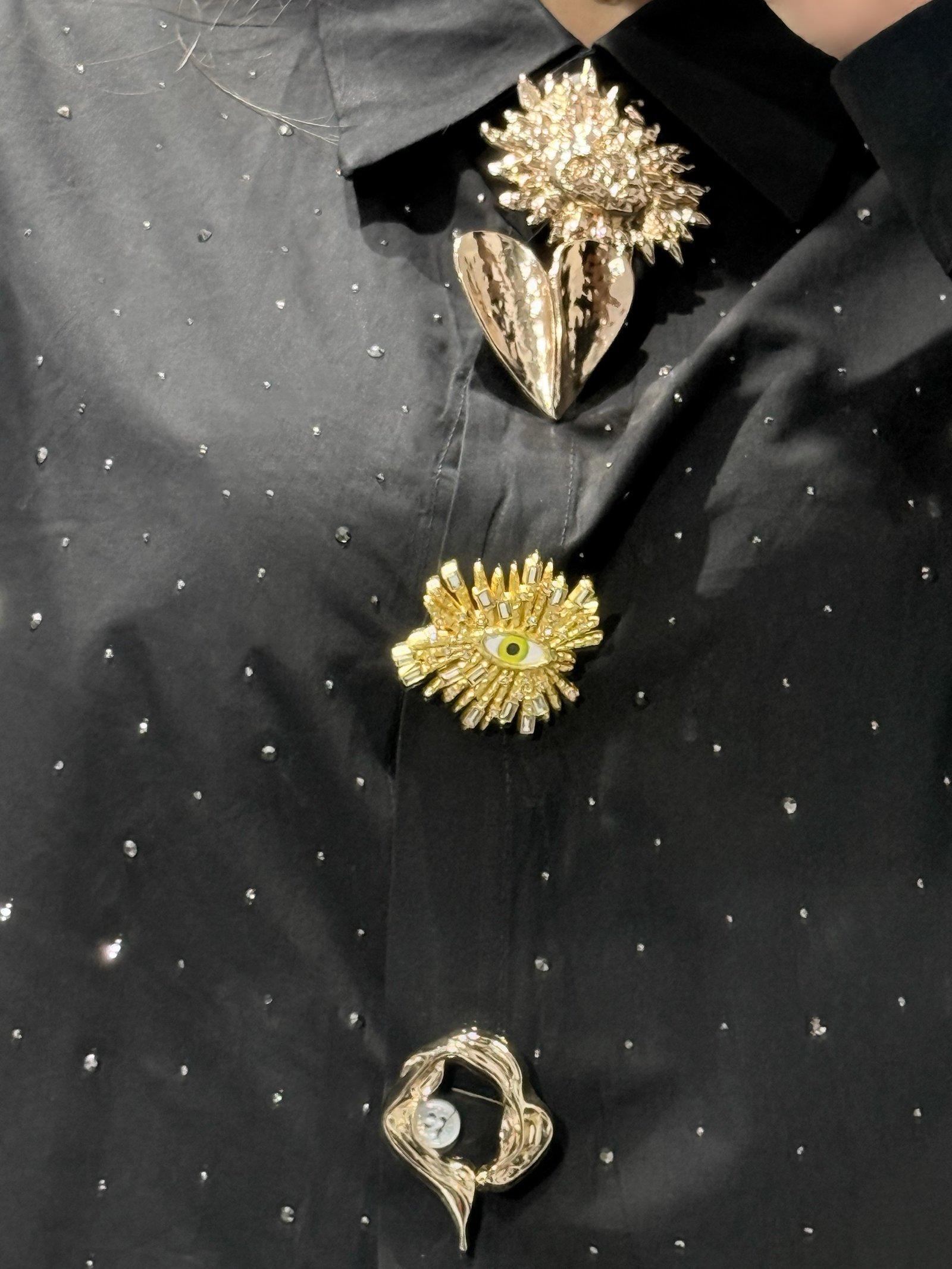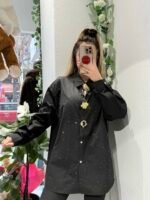 Το πουκάμισο Vesper είναι ένα statement κομμάτι που ισορροπεί ανάμεσα στην κλασική κομψότητα και το μοντέρνο glam. Το βαθύ μαύρο ύφασμά του, διακοσμημένο με λεπτές ασημί πινελιές που θυμίζουν τον νυχτερινό ουρανό, προσφέρει μια διακριτική αλλά καθηλωτική λάμψη.