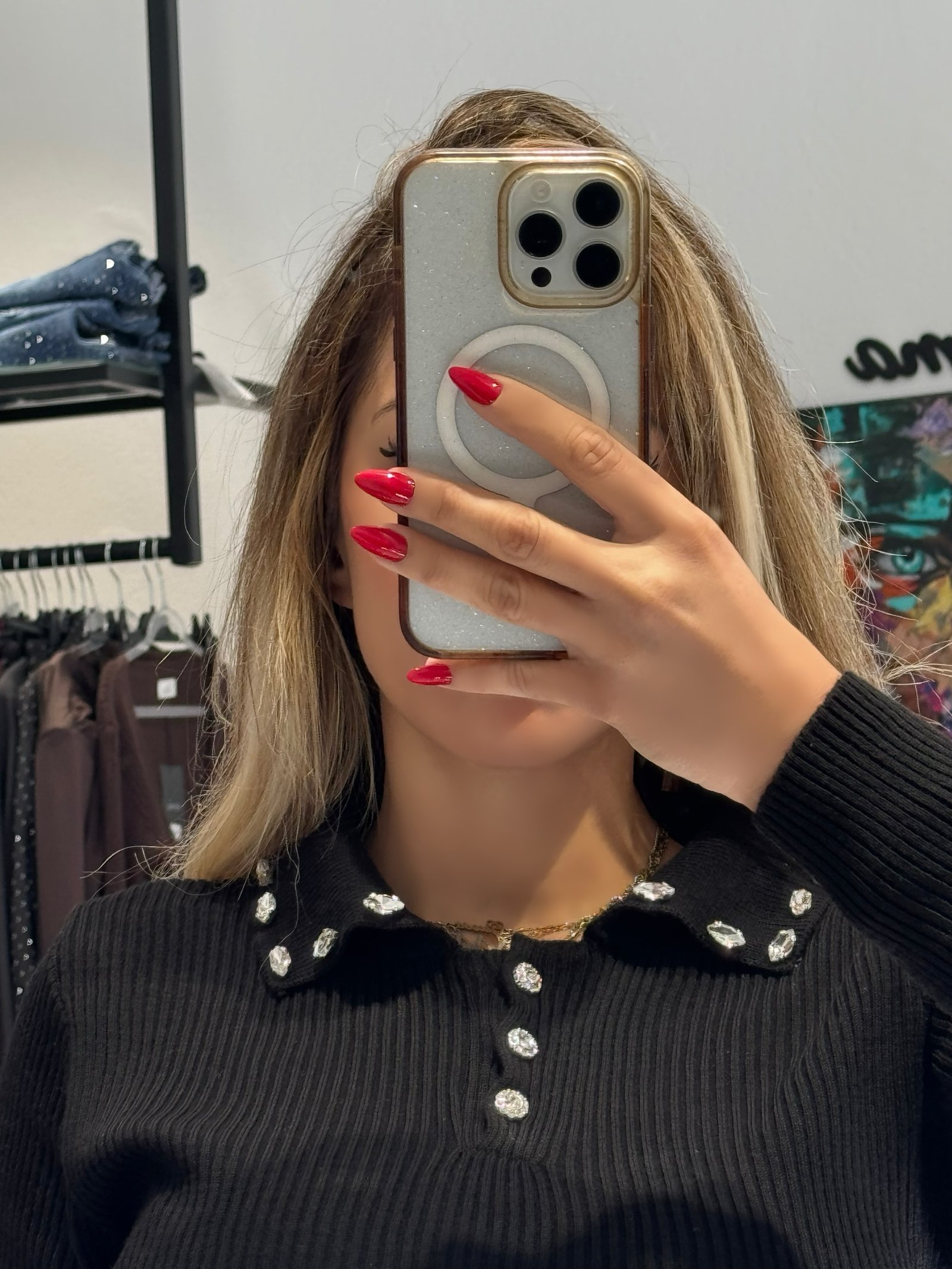 Ανακαλύψτε την επιτομή της διαχρονικής κομψότητας με το “Willow” σε μαύρο χρώμα. Αυτό το ριμπ πουλόβερ είναι ένα απαραίτητο κομμάτι για κάθε γκαρνταρόμπα, συνδυάζοντας την άνεση με το απόλυτο στυλ. Ο κλασικός γιακάς πόλο αναδεικνύεται με λαμπερά κρυστάλλινα κουμπιά, προσδίδοντας μια διακριτική, πολυτελή λάμψη που ξεχωρίζει στο μαύρο φόντο.