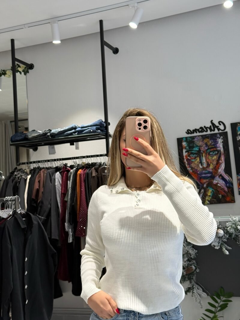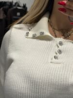 • Σχεδιαστική Λεπτομέρεια: Κομψός γιακάς πόλο με αστραφτερή κρυστάλλινη λεπτομέρεια. Τα στρασένια κουμπάκια μπορείτε να αφήσετε και ανοιχτά .
